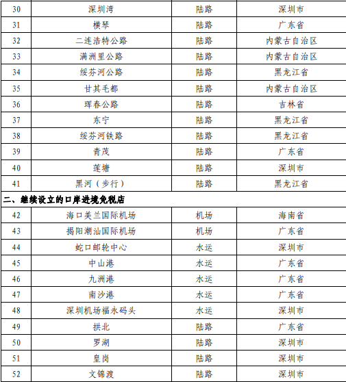一、在武汉天河国际机场等41个口岸各新设1家口岸进境免税店。其中,横琴口岸进境免税店设立后,允许自澳门进境居民旅客在该口岸进境免税店购买一定数量(15000元以内)的免税商品。