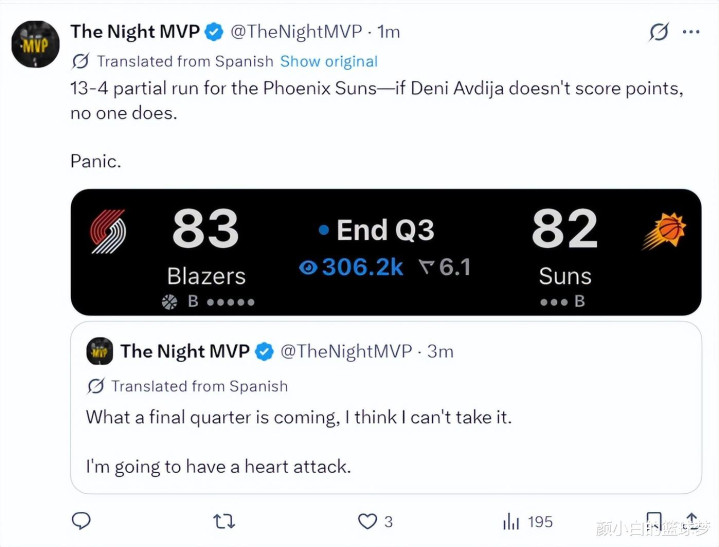 第三节还剩5分钟27秒阿夫迪亚的上篮掷中后诱骗者依然卓著太阳10分,阿夫迪亚单节依然拿到11分2篮板2助攻,皆以为诱骗者要打崩主队太阳了,但没思到布克带着4次犯规匡助凤凰城交代了。