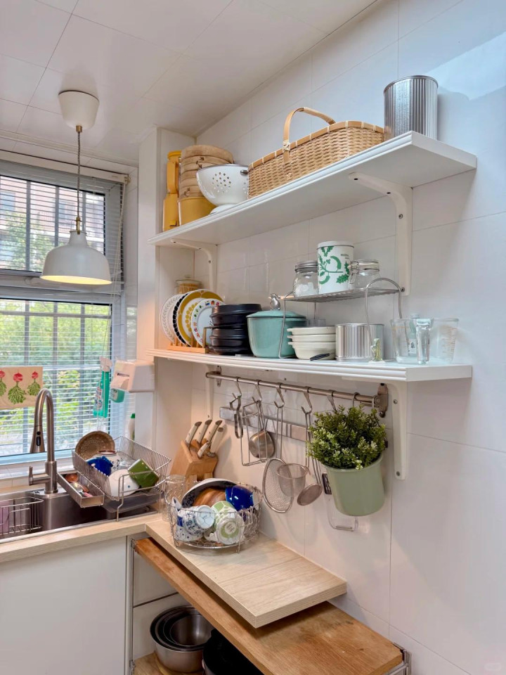 是以厨房的收纳就要捱风缉缝,就要把系数的边边角角齐诈欺上,这么就能取得一个收纳翻倍的厨房了。