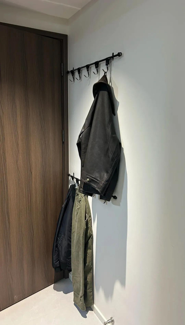 那即是卧室门后,这里不管是用洞洞板,寰宇金属衣架,照旧在墙上装配衣钩,齐能起到很好的截止,齐能挂不少穿戴。