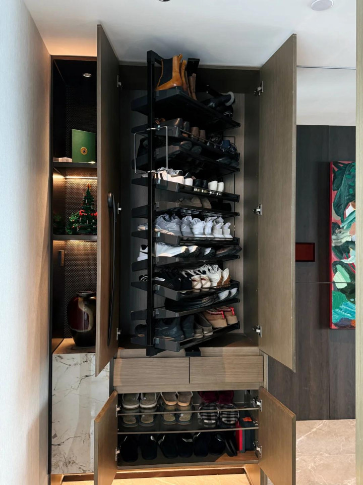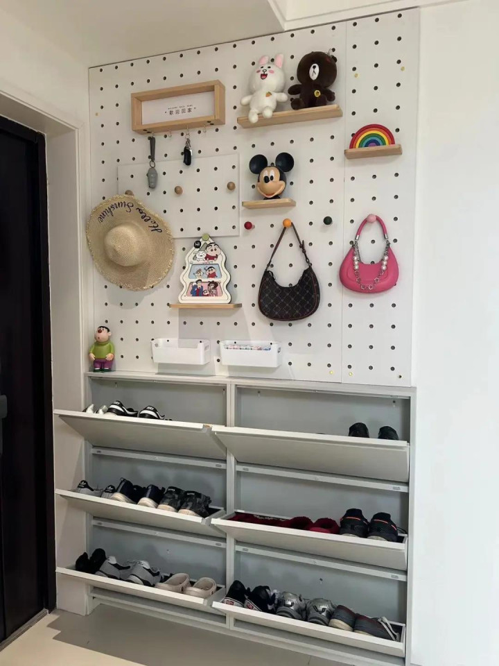 这时间其实可以诈欺五金件,作念立体抽拉鞋柜,这么的鞋柜固然加多了购买抽拉五金件的钱,但鞋柜的收纳量的确是成倍加多,关上柜门,系数这个词玄关整洁干净。