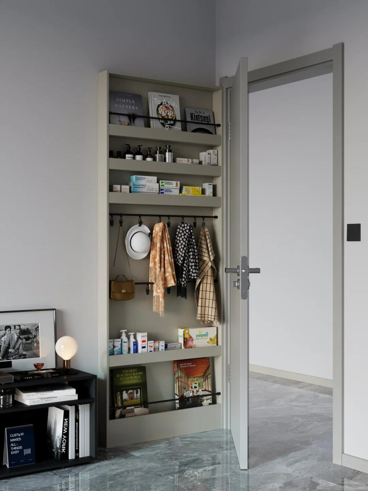 许多小户型开门要么是一个1米宽,一米多长的小通谈,要么即是开门即是厅,这时间为了保证开门过谈不影响,还能放鞋子,用薄柜即是最佳的选拔。