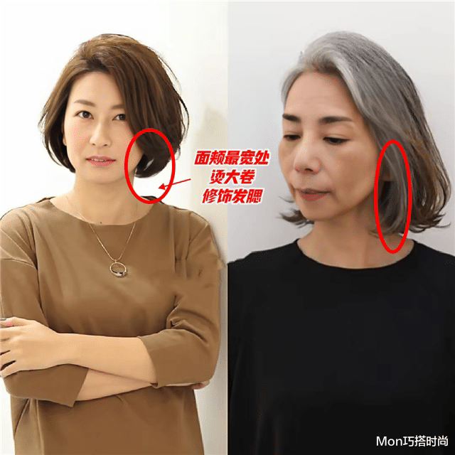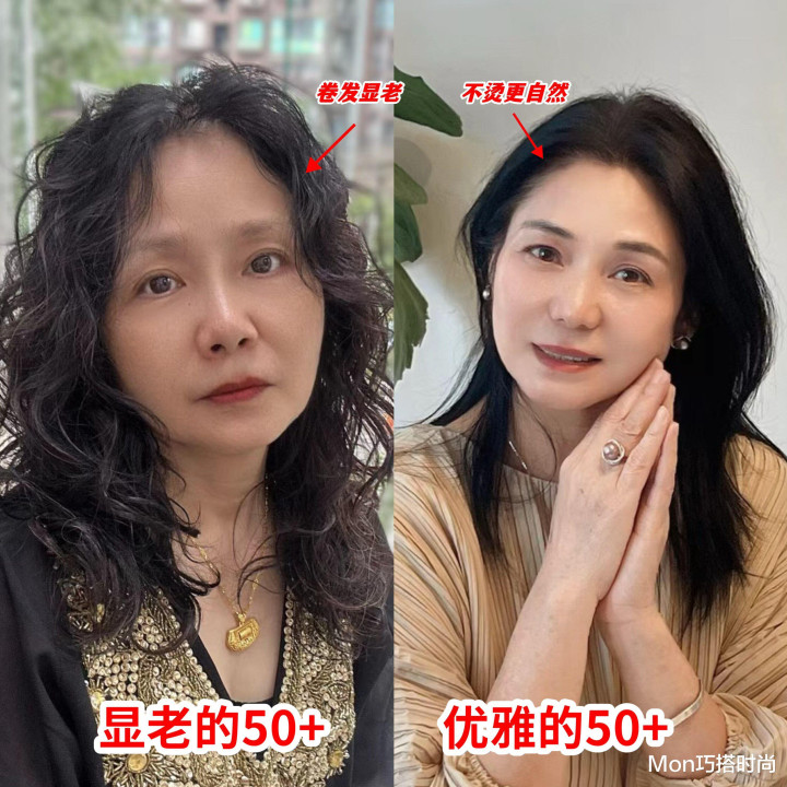 是以,到了五六十岁的女东说念主就别再执着于直发造型了,脸太瘦独霸不了,脸发福发腮也hold不住,不妨尝试更有氛围感的鬈发,用合适的卷度来修饰你的脸型,打造出融会的面部抽象,不医好意思也能提高颜值哦。