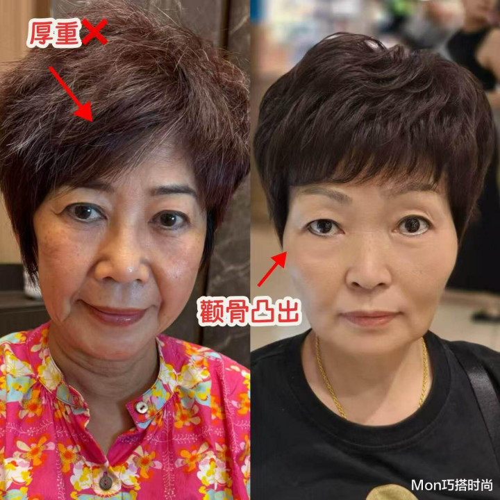 但短发剪不合,就会坐窝拉低你的颜值和气质,尤其是这种微商头短发,是好多中国大妈都踩过的雷,本以为剪短发能显得通盘东说念主利落极少,可戒指显凶还显老。因为微商头短发都堆在头顶,看着相称的巩固,再加上没什么档次感和空气感,短少对脸型的修饰效用,颧骨突、脸型不融会的问题都藏不住。