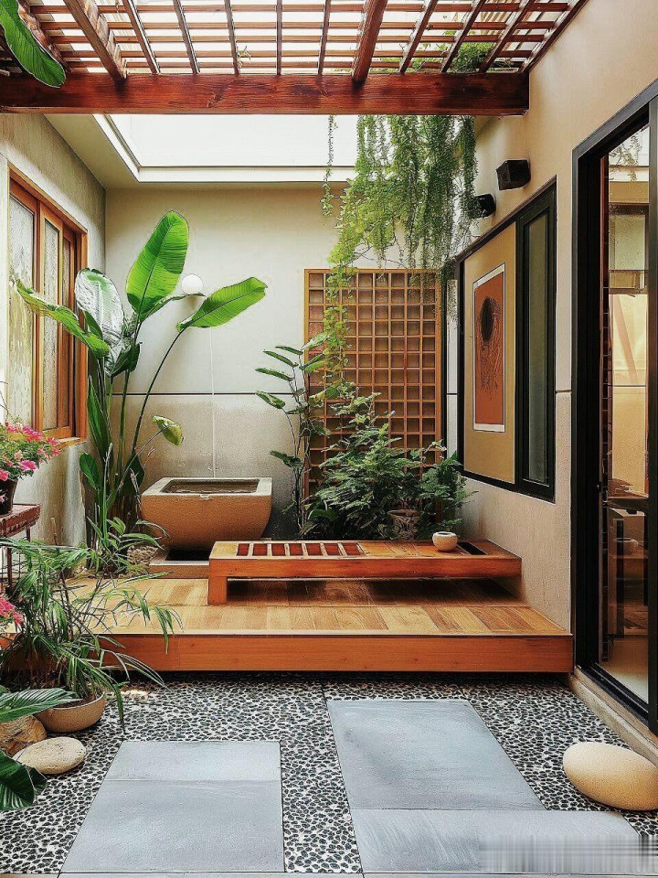 关于小面积的庭院来讲,若是把大地和墙面的情怀一皆作念深色搞定的话,会显得系数空间相配压抑,绝顶显小。