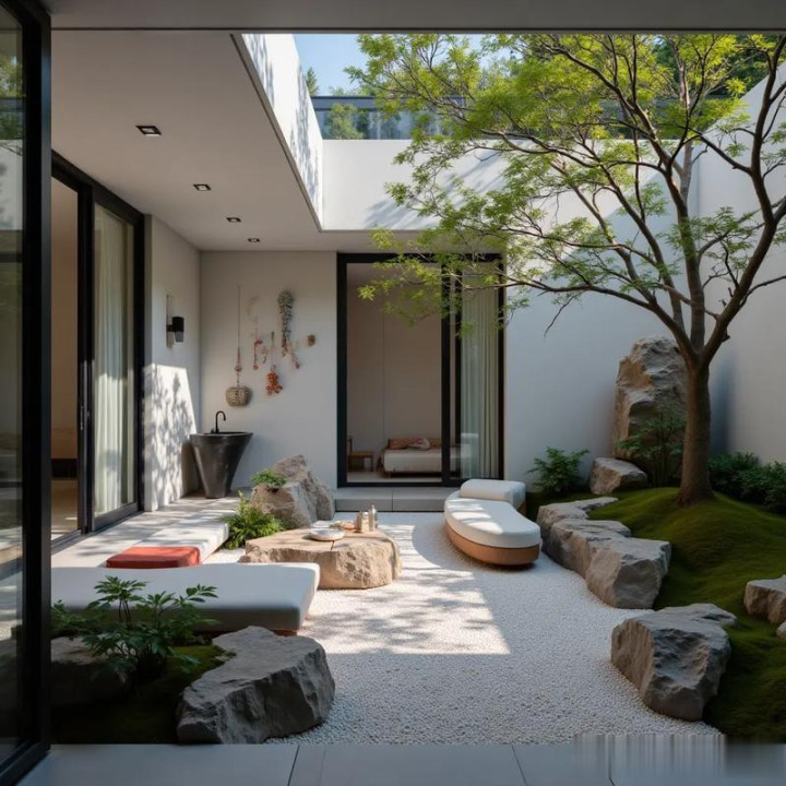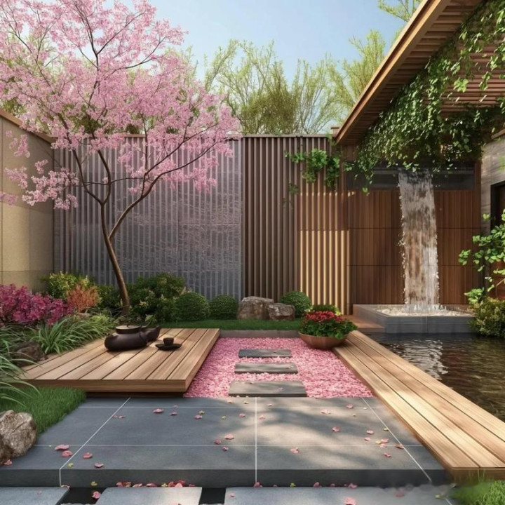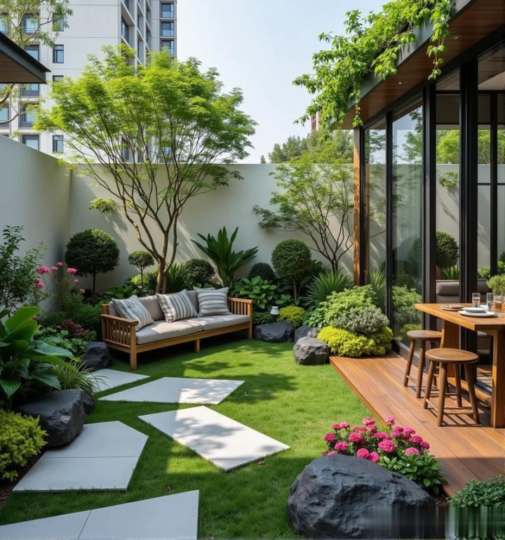 无意间咱们还会在一个边缘种上一棵单杆大型植物,最佳是落叶的,因为它是单杆的,也不会占用太多庭院的空间,关联词顶部空间会相配的丰润,为什么要说要种落叶植物呢?夏天不错不才面歇凉,冬天的话叶子掉了阳光还不错透的进来,又不影响采光。
