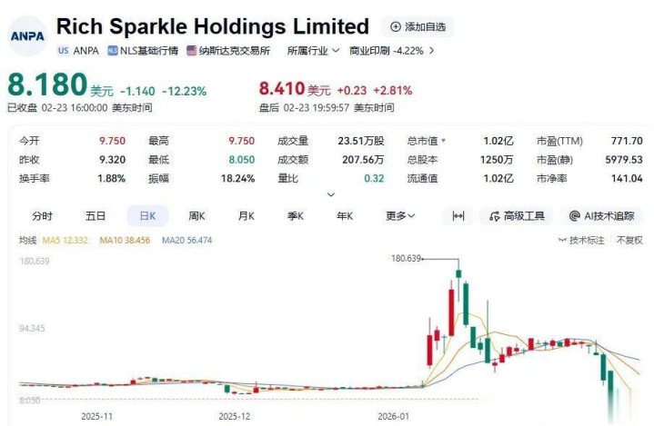 据悉,Rich Sparkle这家公司主业是金融印刷,说白了即是给上市公司印招股书、作念排版翻译,范围极小,2025年7月登陆纳斯达克时,刊行价仅4好意思元,市值刚过5000万好意思元。