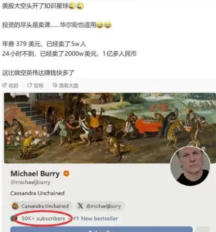 巴里在Substack开起的付费专栏,年费几百好意思元,把我方曩昔用来赚百亿利润的分析框架,打包成翰墨卖给无为投资者,作念起了稳赚不赔的生意。