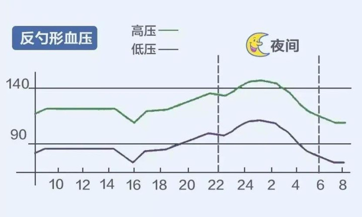 病理状况: 许多肾病患者存在“非勺型血压”,即夜间血压不下落,致使高于白昼。