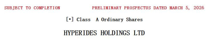 当地时辰2026年3月5日,Hyperides Limited控股公司Hyperides Holdings Ltd.(以下简称:Hyperides)公开向好意思国证券来去委员会(SEC)递交IPO,拟HYRD为股票代码,苦求纳斯达克上市。该公司最早于2025年11月14日向SEC递交机要苦求。