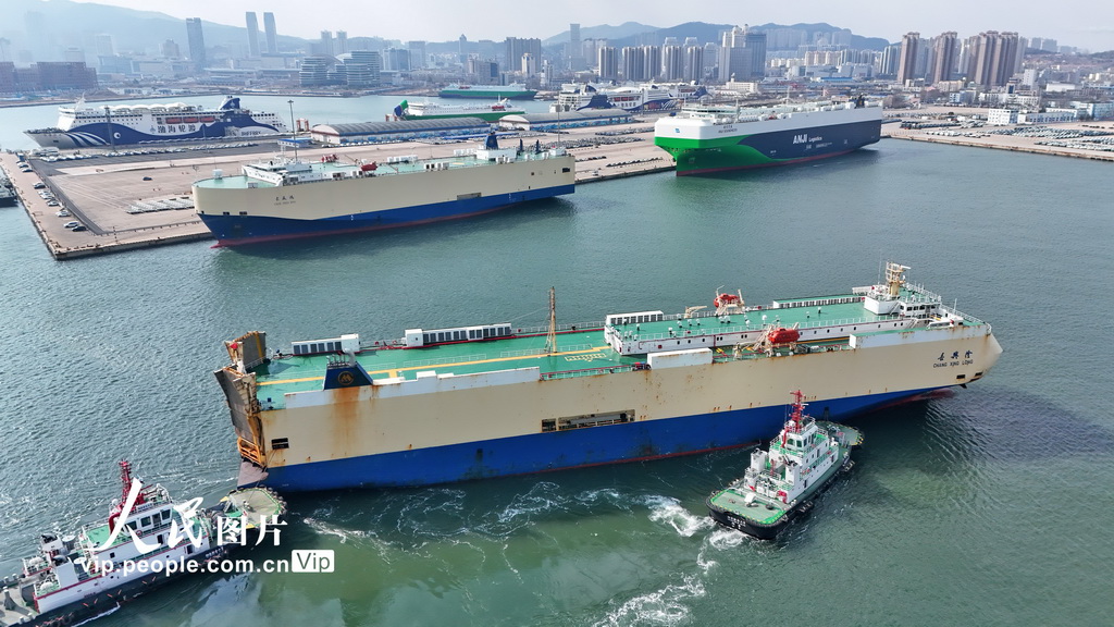 米兰山东口岸烟台港充分确认专科商品车滚装船埠和大家班轮航路布局的特质上风,酿成“以航路带货源、以货源促航路”的良性轮回,完毕了大家主要商品车船埠全秘密、全联通。唐克摄(东说念主民图片网)" />